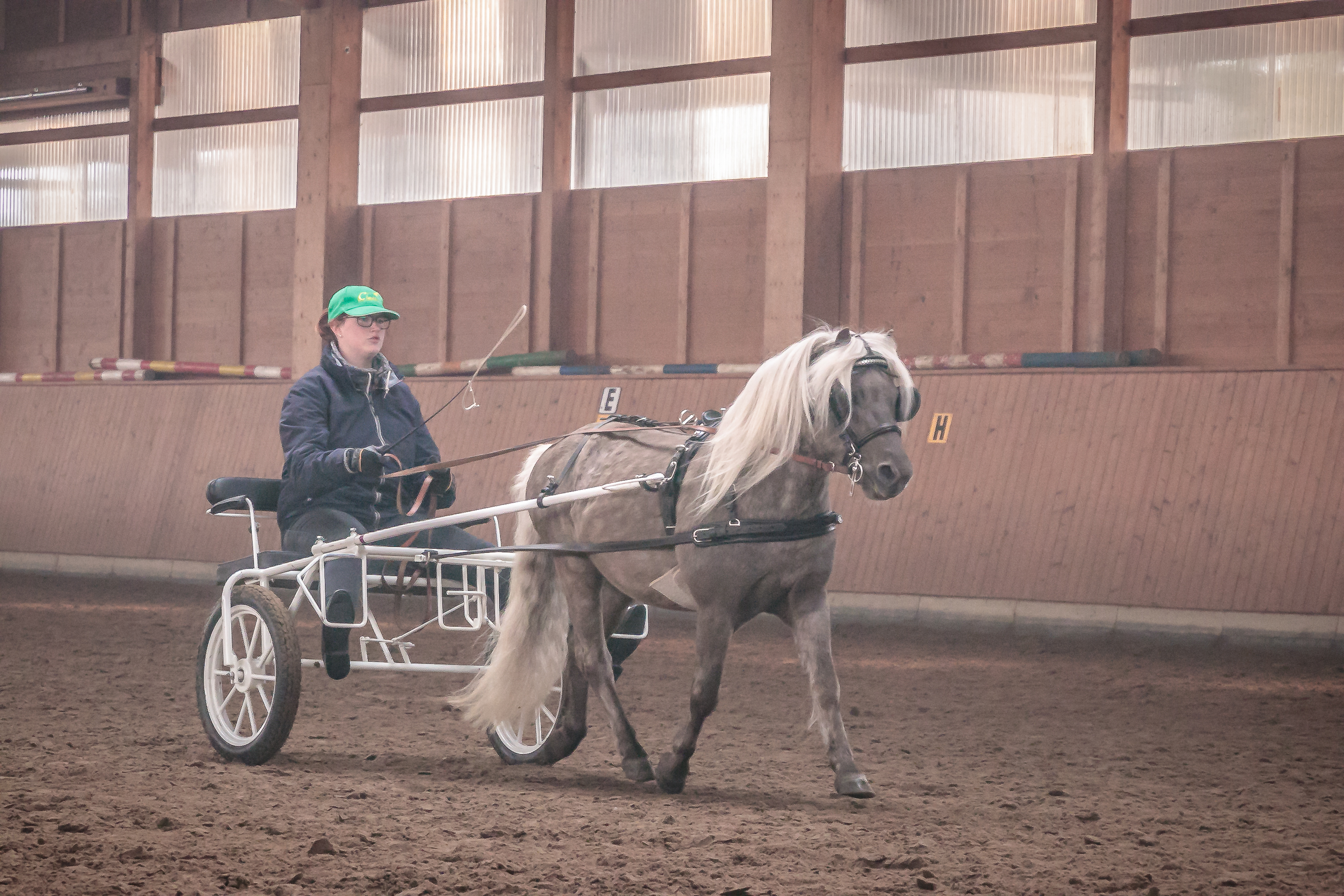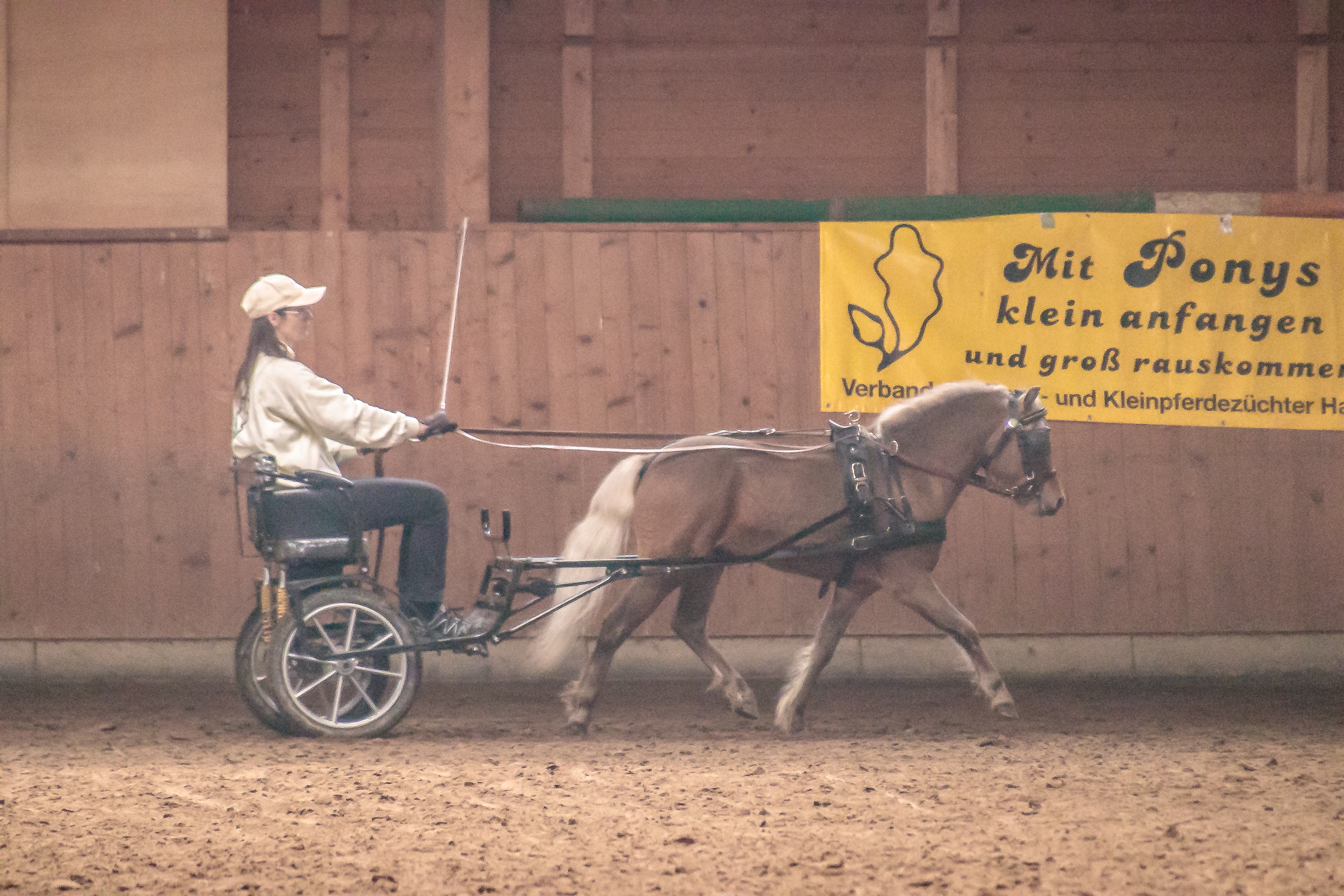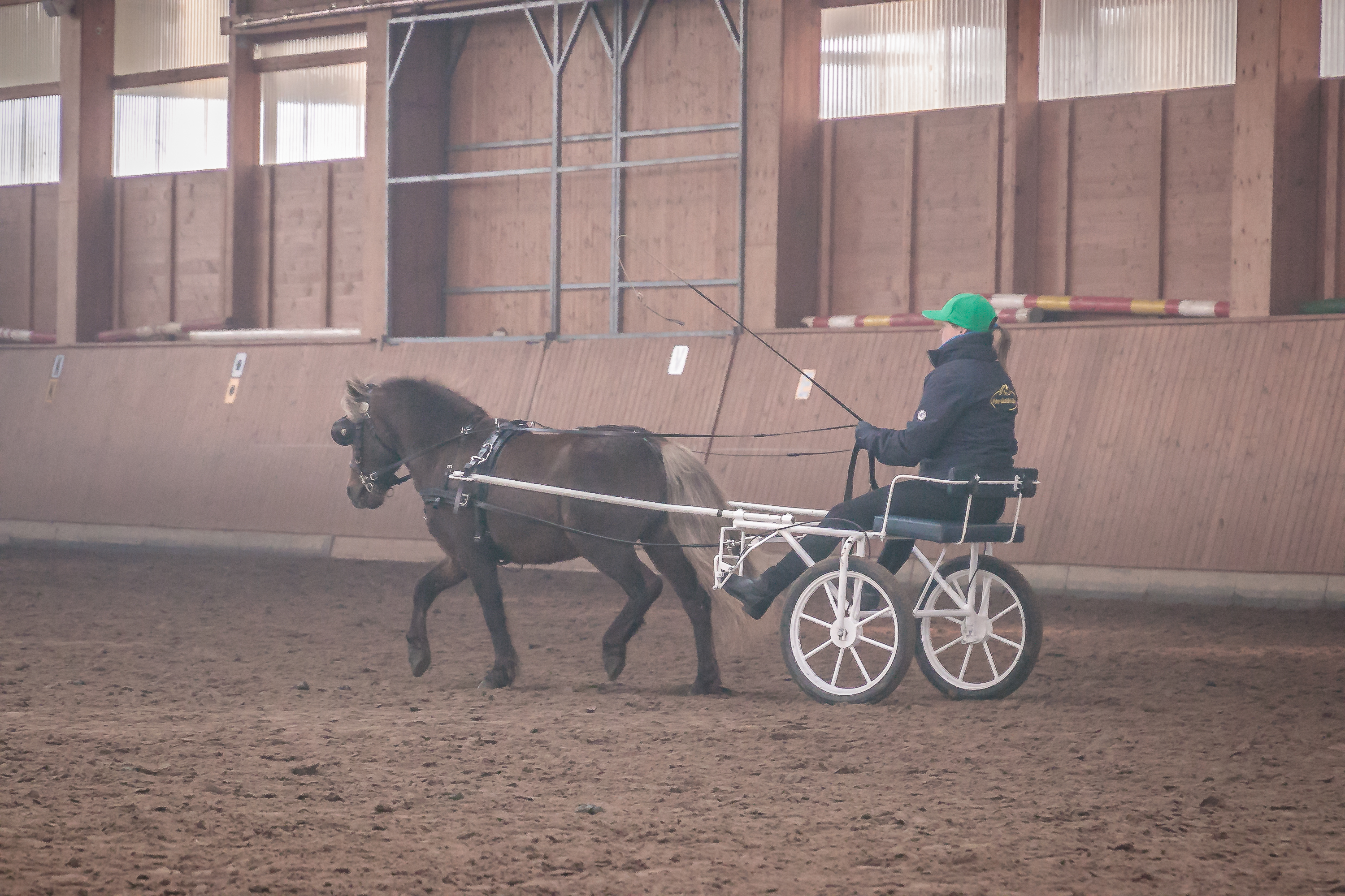 Den Anfang machte mit seinen Haflingern der Zucht- und Fahrstall Lörcher aus Fümmelse. Unterm Sattel wurde der bewegungsstarke Hengst „Nytos WL“ von Nicola Kammin gekonnt präsentiert sowie die beiden Haflingerwallache „Amigo“ und „Winnetou“ von Thomas Schuppert vorm Marathonwagen gefahren, der erst wenige Tage zuvor das Fahrabzeichen in Gold verliehen bekommen hatte. Die Deutschen Classic Ponys vom Gut Ohlhof, „Jeopardy (Paulchen) vom Hexenzipfel“ und „Bonita vom Hexenzipfel“, zeigten sich in der Führzügelklasse bzw. beim Springen an der Longe mit ihren jungen Reiterinnen Tilda Borrmann (9) sowie Greta & Madita Schulz (jeweils 5), geführt von deren Bruder Leander (5), von ihrer besten Seite und sorgten so für sehr viel Applaus.