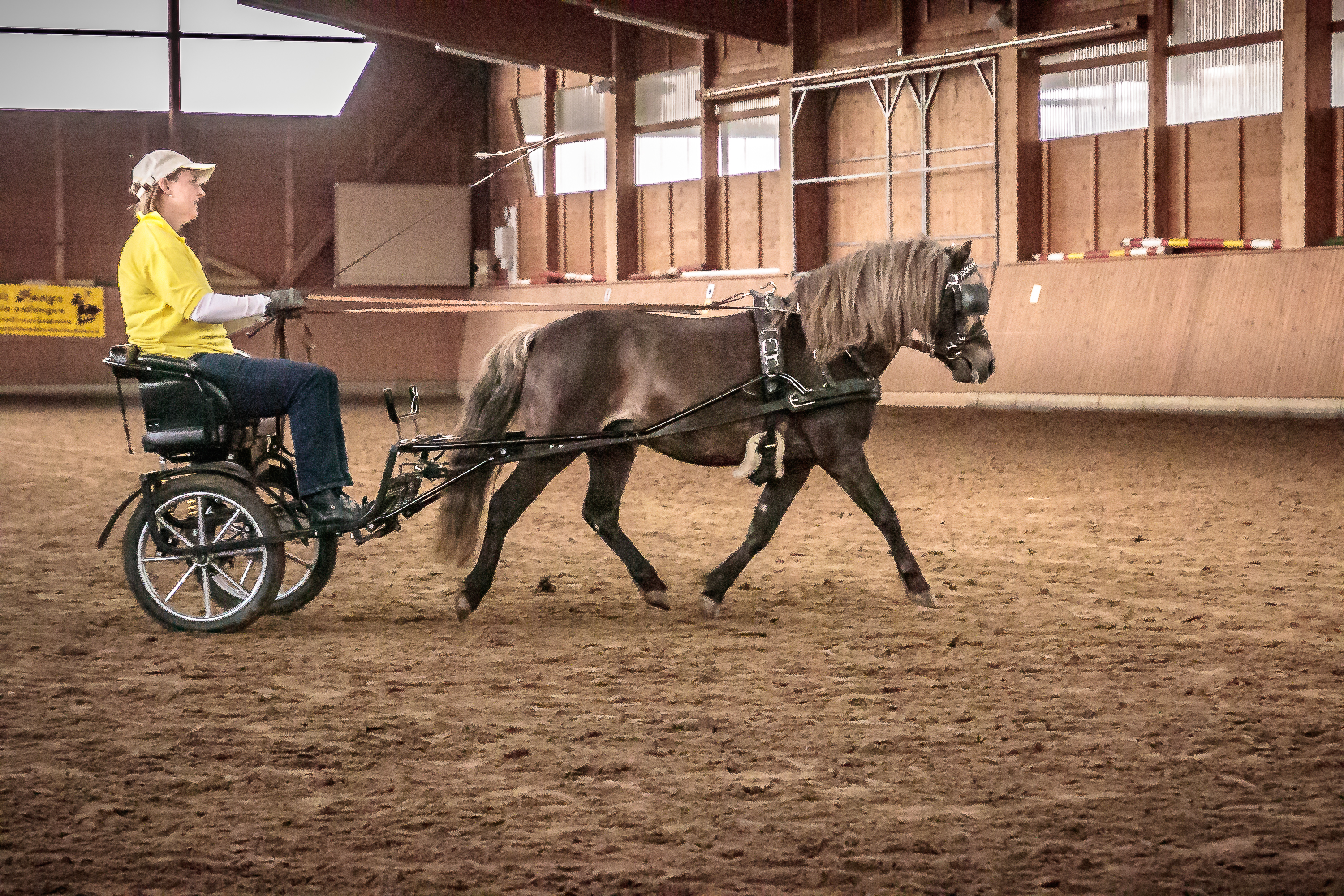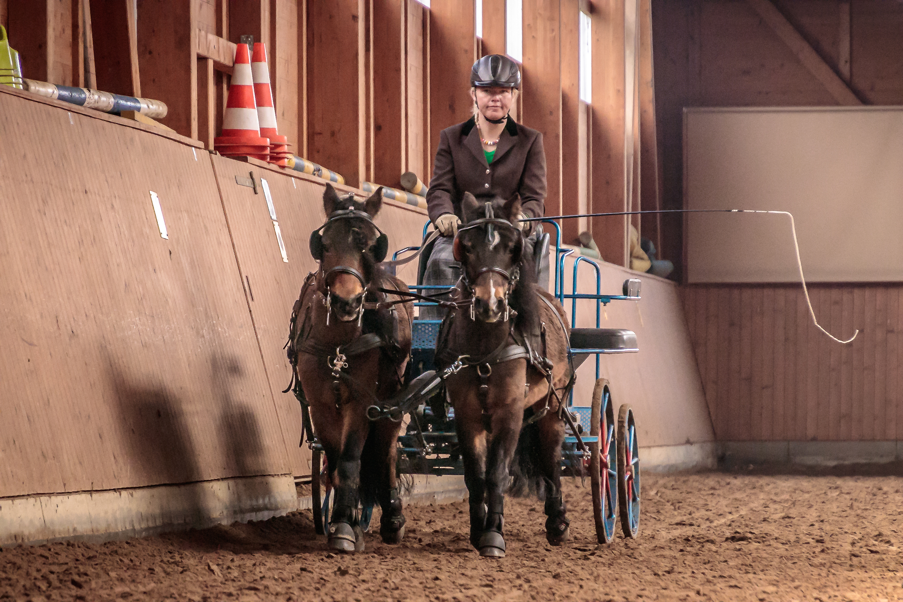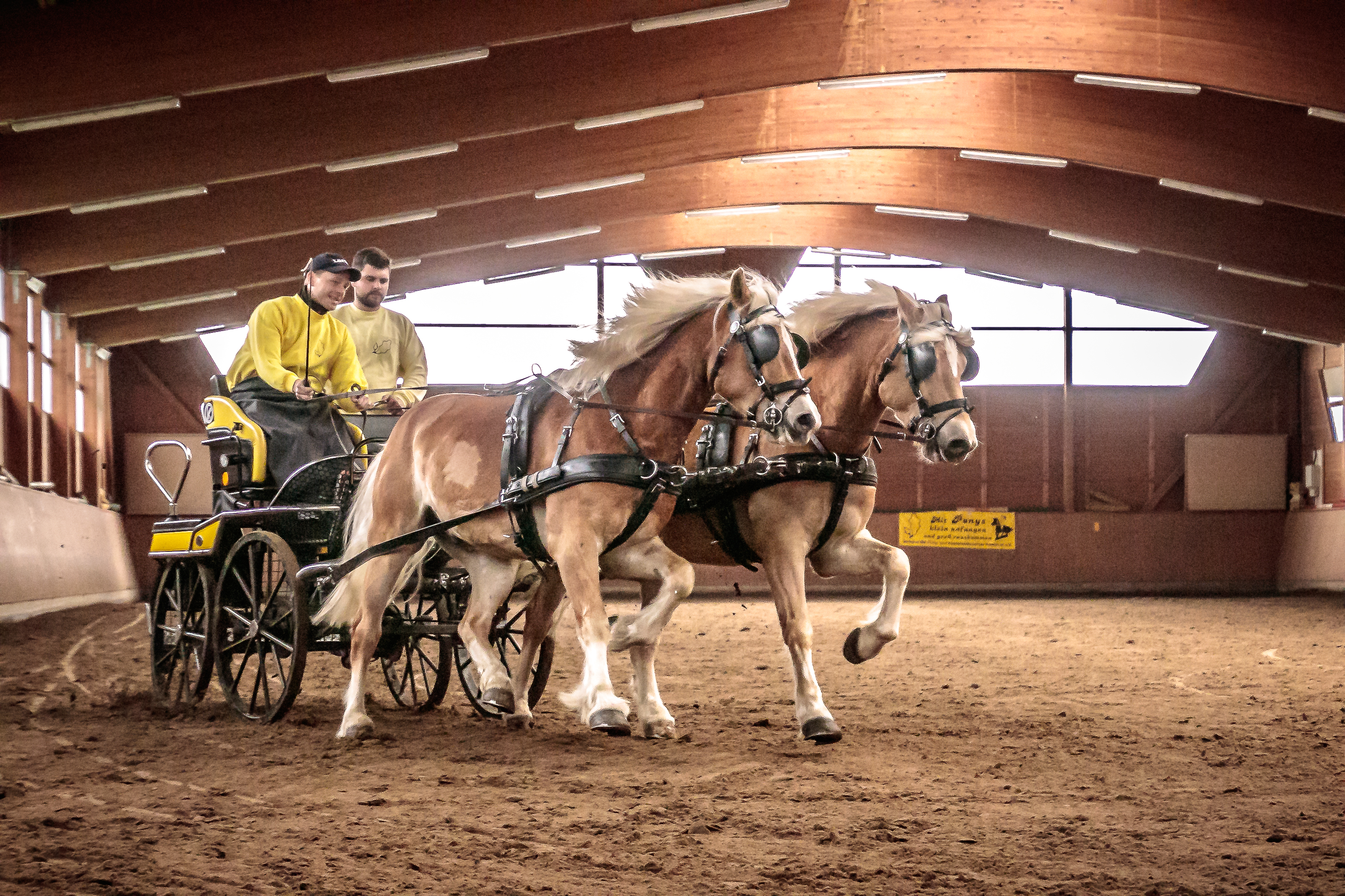 Den Anfang machte mit seinen Haflingern der Zucht- und Fahrstall Lörcher aus Fümmelse. Unterm Sattel wurde der bewegungsstarke Hengst „Nytos WL“ von Nicola Kammin gekonnt präsentiert sowie die beiden Haflingerwallache „Amigo“ und „Winnetou“ von Thomas Schuppert vorm Marathonwagen gefahren, der erst wenige Tage zuvor das Fahrabzeichen in Gold verliehen bekommen hatte. Die Deutschen Classic Ponys vom Gut Ohlhof, „Jeopardy (Paulchen) vom Hexenzipfel“ und „Bonita vom Hexenzipfel“, zeigten sich in der Führzügelklasse bzw. beim Springen an der Longe mit ihren jungen Reiterinnen Tilda Borrmann (9) sowie Greta & Madita Schulz (jeweils 5), geführt von deren Bruder Leander (5), von ihrer besten Seite und sorgten so für sehr viel Applaus.